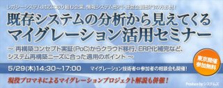 株式会社システムズ(本社:東京都品川区、代表取締役社長:小河原隆史)は、5月29日(木) に『既存システムの分析から見えてくるマイグレーション活用セミナー』 ~再構築コンセプト実証(PoC)からクラウド移行、ERP化補完など、システム再構築ニーズに合った適用のポイント~ と題したプライベートセミナーを開催します