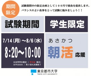 【東京都市大学「朝活応援!‐前期末試験に向けワンコイン100円朝食メニューを提供‐」概要】
