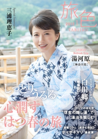 2015年新春号の表紙・巻頭グラビアは、女優の三浦理恵子さん。温泉好きの三浦さんが、神奈川・湯河原の情緒あふれる温泉街を訪ねます。特集は、雪に覆われた岐阜県・白川郷の幻想的な景色や、山梨や長野に点在する武将・武田信玄の“隠し湯”を取り上げます。