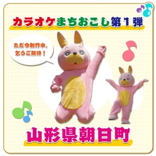 制作第1弾は、町役場のご協力により、無個性キャラ「桃色ウサヒ」が目印の山形県朝日町に決定いたしました。