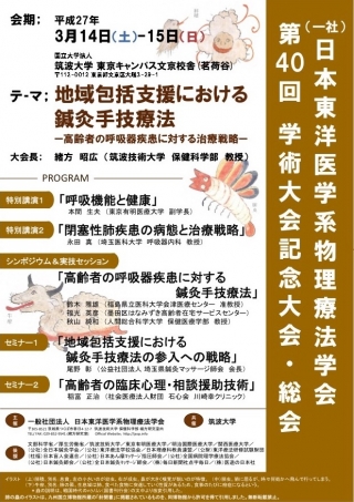 (一社)日本東洋医学系物理療法学会では第40回学術大会を下記の通り開催いたします。