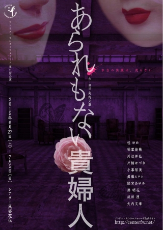 矢内文章率いるアトリエ・センターフォワードは演劇公演「あられもない貴婦人」を2015年6月27日(土) ~7月5日(日) ・東京・目白「シアター風姿花伝」にて開催致します。「パックバック&シアター」と銘打って外国人観光客を無料(同伴者3000円)にて招待致します。
