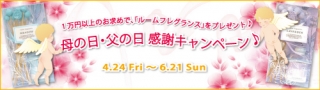 この度、日頃の感謝を伝える母の日と父の日を迎えるにあたり、ご愛用者の皆様へ向けて、「ルームフレグランスプレゼント♪ 母の日・父の日 感謝キャンペーン♪」を下記の「キャンペーン概要」のとおり実施します。