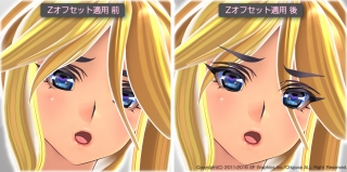 Zオフセットを適用することでロマンティックなバングカット(前髪)はそのままに、キャラクターの持つ活き活きとした豊かな感情を表現する事ができます。