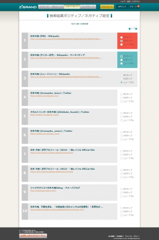 ZiBRANDの特徴である検索結果管理を行う際、ポジティブ・ネガティブ・ニュートラル判定が重要となってきます。