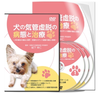 今回、2,000件以上の呼吸器疾患症例と、人医の研究から得た知識と技術で国内トップクラスの実績を持つ城下氏を講師に迎え、犬の気管虚脱について明日からの臨床で役立つ診査・診断・治療法を学べるDVDを制作しました。例えば、「気管虚脱の病態を3パターンに分類する方法」を使えば、ほとんどの気管虚脱症例が温存的内科療法で治療できることがわかります。他にも、ステントの適応基準や留置方法、症例解説なども収録しています。