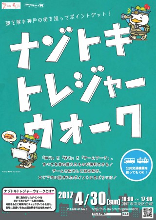 「ナゾトキトレジャーウォーク」とは地図をもとに神戸の街にちりばめられたポイントを制限時間内に巡り、各ポイントに仕掛けられた謎を解き得点を集めるチーム制の競技です。