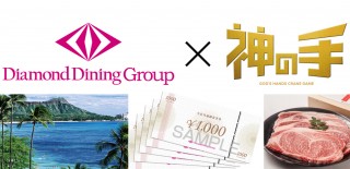 株式会社ブランジスタゲーム(本社:東京都渋谷区、代表取締役社長:木村泰宗)が運営する、神体験3Dクレーンゲーム「神の手」とダイヤモンドダイニンググループ(本社:東京都港区、代表取締役社長:松村厚久、以下、ダイヤモンドダイニング)がコラボする、第30弾企画が決定いたしました。「神の手」初の外食企業とのコラボとなっており、豪華ハワイペア旅行券や約270店舗で利用できるお食事券、極上「氷温熟成和牛」が無料で当たるコラボ企画を5月1日 より実施いたします。