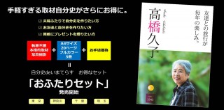 「銀婚式・金婚式などの結婚周年記念に」「夫婦ふたりで自分史を作りたい」、「両親にプレゼントを贈りたい」「友達と一緒に自分史を作りたい」。このような方々にさらに手軽に取材自分史を楽しんで頂きたいと思います。