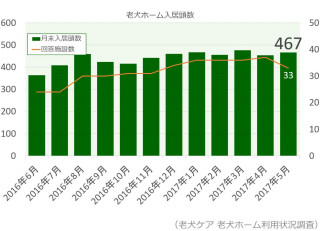 ◎2017年5月 末時点の老犬ホーム入居頭数は467頭