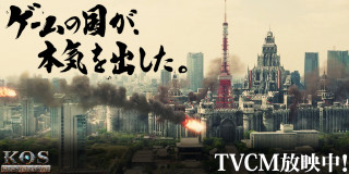 『KOS - Kings of Sanctuary(以下KOS)』初のTVCMでは、誰もが知っている日本のランドマーク周辺にゲームの世界から飛び出た城がそびえ立ち、臨場感溢れる激しい戦闘が発生します。