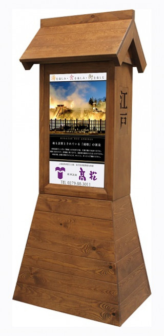木製筐体はデジタル(液晶ディスプレイ)と自然と伝統の融合により、これまでのスチール筐体でのデジタルサイネージでは似合わない「和」の伝統を守るホテル、高級料亭、寿司屋、旅館などへ「和」の雰囲気を壊すことなく、高級感を保ちながら溶け込みことができるかに着目し、製品化に至りました。
