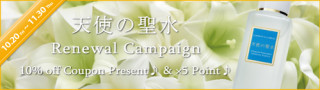 同製品のリニューアル新発売を記念し、本日から11月30日 迄の期間、「天使の聖水 リニューアル新発売記念キャンペーン♪」を下記の「キャンペーン概要」のとおり実施いたします。