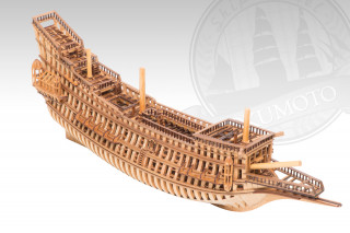 帆船模型歴40年でシップモデル奥本のオーナー奥本は帆船の資料を元に図面を制作し、レーザーカットを使用することで「サンタマリア号」、「エンデバー号」に続いて、この度「ラ・クローン」の構造模型を精密にキット化しました。