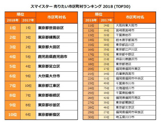 不動産関連の比較査定サイト「スマイスター(https://www.sumaistar.com)」を運営する株式会社シースタイル(本社:東京都中央区、代表取締役:川合 大無)は、「スマイスター」の不動産売却に査定依頼のあった不動産の行政区をもとに「売りたい市区町村ランキング 2018」を集計しましたので、概要をご報告いたします。