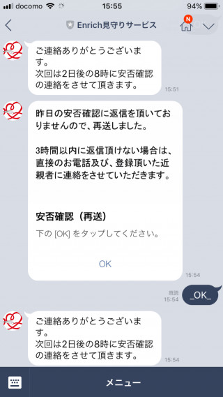高齢者向けのサービスが多数ある現在、40代50代の孤独死の急増に対して、LINEのプッシュ通知による「もしもの時」を早期発見するための安否確認・通知サービスです。