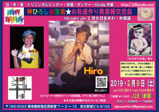 「神ひろしショー」の4年目の集大成を、2018年12月 に華やかに完走した日・中・英トリリンガルシンガー 神ひろしが初の「誕生会(お友達作り異業種交流会)」を2019年の2月9日(土) 7時頃から〜10時頃まで・新宿「J28」で開催する。