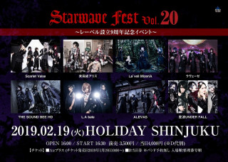 今のヴィジュアルシーンへ黒い衝撃を突きつけるバンドを多く擁するレーベル、それが「Starwave Records」。同レーベルが今年9周年を迎えることから、2月19日(火) HOLIDAY SHINJUKUを舞台に「Starwave Fest Vol.20 〜レーベル設立9周年記念イベント〜」を行うことを発表した。