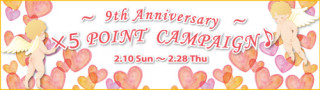 この度、当社の製品や理念をご支持くださるご愛用者の皆さまへ感謝の気持ちを込めて、「創業9周年記念 ポイント5倍キャンペーン♪」を下記の「キャンペーン概要」のとおり実施いたします。