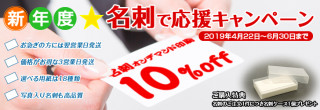 印刷通販の(株)ファインワークス(本社:京都府京都市/代表取締役:橋本 優)は、自社オンラインショップにて、オンデマンド名刺印刷全品が10%OFFとなる割引キャンペーンを2019年4月22日(月) より実施します。期間は6月30日(日) まで。