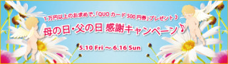 この度、日頃の感謝の気持ちを伝える母の日を迎えるにあたり、キャメロン&ガブリエルの育ての親であられるご愛用者の皆様へ気持ちを込めて、「QUOカードプレゼント♪ 母の日・父の日 感謝キャンペーン♪」を下記の「キャンペーン概要」のとおり実施します。