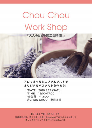 ダイニングバー・ライフスタイルショップ・エンタメ事業などを展開する株式会社インターン(本社:東日本橋、代表取締役:半澤洋、以下当社)は、アロマオイルとエプソムソルトを利用したオリジナルバスソルトづくりのワークショップを2019年8月24日 に開催いたします。