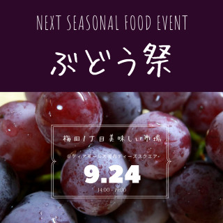 梅田一丁目美味しい市場事務局では、JR大阪駅南側の大阪駅前ダイヤモンド地下街(ディアモール大阪)内のイベントスペース「ディーズスクエア」にて、産地から選りすぐりの事業者を集めて「梅田1丁目美味しい市場」(都市型マルシェ)〜ぶどう祭り〜を9月24日(火) 14時~19時に開催します。