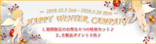 この度、肌にとって過酷な環境の冬も皆さまに透明感に満ちた乾燥知らずの美肌でお過ごしいただくために、並びに、ご愛用者の皆さまの日頃のご愛顧に感謝の気持ちを込めて、12月1日 から1月20日 迄の期間、「HAPPY WINTER CAMPAIGN 2019-2020♪」を下記の「キャンペーン概要」のとおり実施いたします。