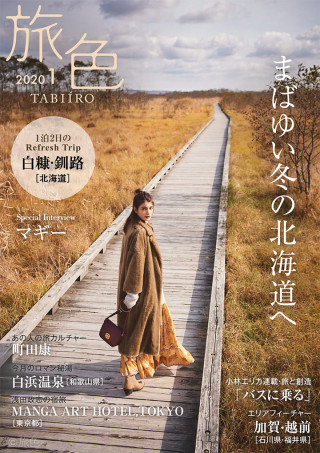 「旅色」今号の表紙・巻頭インタビューは、25歳を越えてからは定期的に旅をするようになったというマギーさんが登場。沖縄・小浜島に友達と行ったときの話や、写真集の撮影で訪れたスペインの話などを伺いました。1泊2日の旅では、北海道東部の白糠町、釧路市の冬のグルメと景色をマギーさんが堪能。