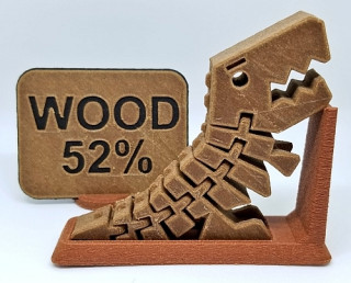 同製品は樹脂に木粉が52%添加された、新しいタイプの木質フィラメントです。ベース樹脂に改質PP(ポリプロピレン)を採用したことで3Dプリンタのノズル詰まりを克服し、木粉高充填でも高流動を実現しました。