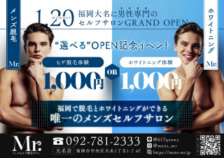 株式会社テラノヴァは、メンズセルフ脱毛Mr.(ミスター)を 2020 年 1 月 20 日(月)より福岡市中央区大名にOPENいたしました。