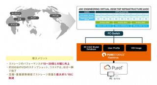 同社では、従来、設計用ワークステーションを各エンジニアに提供していましたが、端末の管理やセットアップ作業に多くの工数を要するため、効率化の一環として、2013年から、eVDIを活用してきました。そして、昨今、プラントの大規模化やビジネスのグローバル化が進む中で、eVDIを支える基盤により高い能力が求められるようになっていることから、今回発表するストレージ強化を含むインフラ環境改善に着手しました。