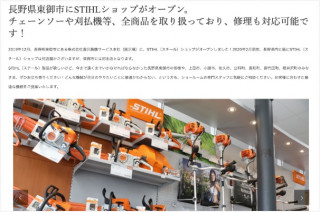 昨年12月にインショップでオープンした同社展示場のSTIHLShopに関し、2月の展示会での好評を受けて制作・公開。今後WEBでの露出を強め、月間1,000PVを当面の目安として、東信(長野県東部)地域を代表する正規販売店「STIHLShop」として存在感を発揮して参る所存です。