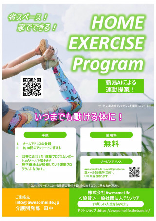 介護事業や介護ITコンサルティングを手掛ける、株式会社AwesomeLife(所在地:神奈川県平塚市馬入本町、代表取締役:田中 一秀)は、一般社団法人テクノケアと協業し「ホームエクササイズ自動判別プログラム」を、2020年4月24日(金) より開始します。