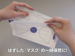「しまいマスク」は、主に接客サービス業を訪れてマスクを外さなければならないお客様に使っていただく紙製使い捨てマスクケースである。来店したお客様が自身でマスクを「しまいマスク」に収め、退店時には使用済みを廃棄できるので、「マスクを汚したくないお客様」「店内の衛生を保ちたいお店」双方にメリットが有り、店内の感染リスクを軽減することが期待できる。