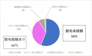 最初に、脱毛の経験があるかどうかを質問したところ、全体の44%が「脱毛の経験がある」と回答しました。