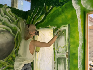 新しい店内はまるでジブリの世界に迷い込んだよう。大迫力な巨大壁画は必見です!