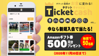 「TicketCash」では、サービスのリリースを記念いたしまして公式HPで特別キャンペーンを実施中です。2020年11月31日(月) までに、ご入会された方の中から、抽選で50名様にAmazonギフト券500円分をプレゼントいたします。