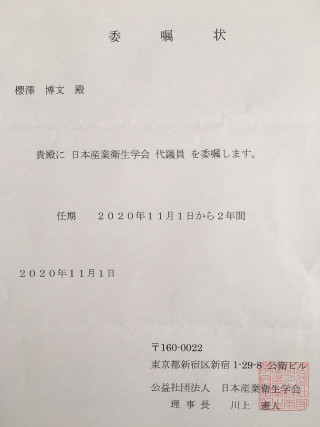 健康経営に長けた産業医で知られる合同会社パラゴン代表の櫻澤博文(医師・労働衛生コンサルタント)が、社団法人 日本産業衛生学会(理事長:東京大学大学院医学系研究科 公共健康医学専攻 精神保健学分野 川上憲人教授)関東地方会の代議員に選出されました。