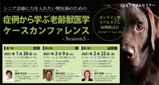 株式会社QIX(所在地:東京都町田市、代表取締役:生田目康道)は、オンライン型リアルタイム症例検討会『シニア診療に力を入れたい獣医師のための 症例から学ぶ老齢獣医学 ケースカンファレンス‐Season3‐』を開催いたします。