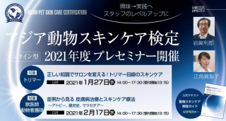 アジア動物スキンケア検定事務局(株式会社QIX(所在地:東京都町田市)内)は、トリマーおよび獣医師・動物看護師向けにオンライン型講習『アジア動物スキンケア検定 2021年度プレセミナー』を開催する運びとなりました。