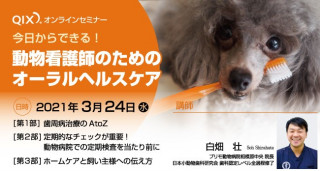 株式会社QIX(所在地:東京都町田市、代表取締役:生田目康道)は、2021年3月24日(水) にオンラインセミナー「今日からできる!動物看護師のためのオーラルヘルスケア」を開催いたします。