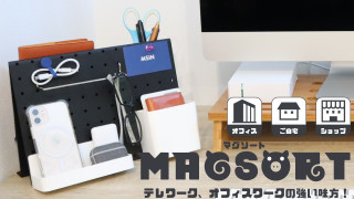 MagSort(マグソート)とは、収納の「見える化」で新しい整理収納ツール。100円ショップやホームセンターに売っているマグネットのトレイやフックが使え、卓上のガジェット、文房具や書類などをキレイに並べて整理ができるアイテムになっています。