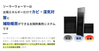 “日本の工場を元気にする“というスローガンを掲げている工場向けポータルサイト「解決ファクトリー」は、工場にまつわるお悩みや困りごとを解決するための商品やサービス、情報を発信することを目的としています。その中の新しいコンテンツページとして太陽エネルギーだけでカビ・湿気対策と補助暖房ができる「ソーラーウォーマー