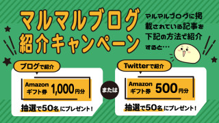 ブログやTwitterを行なっている人は、マルマルブログの紹介でAmazonギフト券が抽選で当たりますので、ぜひご参加ください。