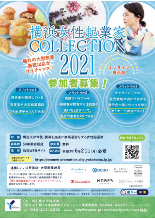 女性起業家にWEB上での販路拡大やブランド力のある百貨店・大型商業施設出店のチャンスを掴んでいただくため、オンライン展示会『横浜女性起業家COLLECTION 2021(横コレ2021)』を開催します。