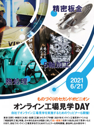 Web活用経営株式会社(東京都・小平市)は、中小ものづくり企業3社をLIVEで見学できるオンライン工場見学イベントを6月21日(月) に実施いたします。6月1日 より、Web事前登録を受付中です。