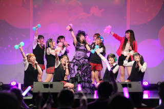 後半は、「恋時雨」「夢幻華」と激しめの楽曲を立て続けに歌唱。蒼音舞は、裾の長いドレス姿のまま躍れば、メンバーたちも彼女のドレスの裾を踏まないようにとさりげなく気遣いながら歌い躍っていた。当の蒼音舞自身、動きが制限されるドレス姿とは思えない、いつものように躍動したパフォーマンスから、ドレス姿だからこその気品あふれた姿まで見せてゆく。いや、いつも以上に可憐さの増した姿を蒼音舞は見せてくれた。