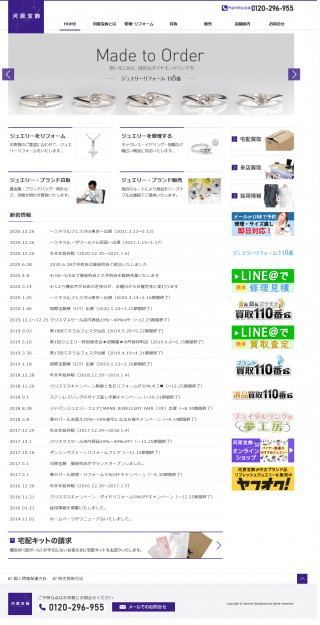 また、貴金属・ブランド品の買取やこだわりジュエリーの販売も行っており、ジュエリーに関する総合的なビジネスを行っております。