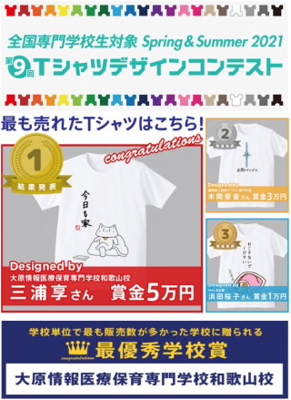 株式会社ジーンズメイト(本社:東京都中野区、代表取締役社長:冨澤茂、以下ジーンズ メイト)は、専門学校に通う学生を対象に開催している『第9回Tシャツデザインコンテスト』の総売上枚数が多かった最優秀賞3作品と、学校単位で最も販売数が多かった最優秀学校賞が決定したことをお知らせいたします。